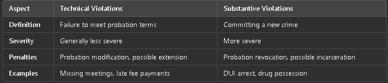 Understanding the distinction between technical vs. substantive probation violations is vital: